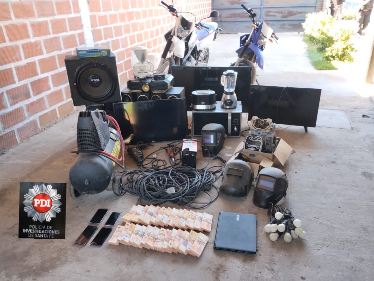 Como resultado de los allanamientos detuvieron a nueve personas y secuestraron cerca de tres millones de pesos en efectivo y alrededor de 100 dosis de cocaína en bochas y un ladrillo de marihuana con un peso aproximado de un kilo. Los agentes de la PDI incautaron además plantas de marihuana, dos rifles, cinco teléfonos celulares, una notebook, motos enduro, electrodomésticos y demás elementos de interés para la causa.