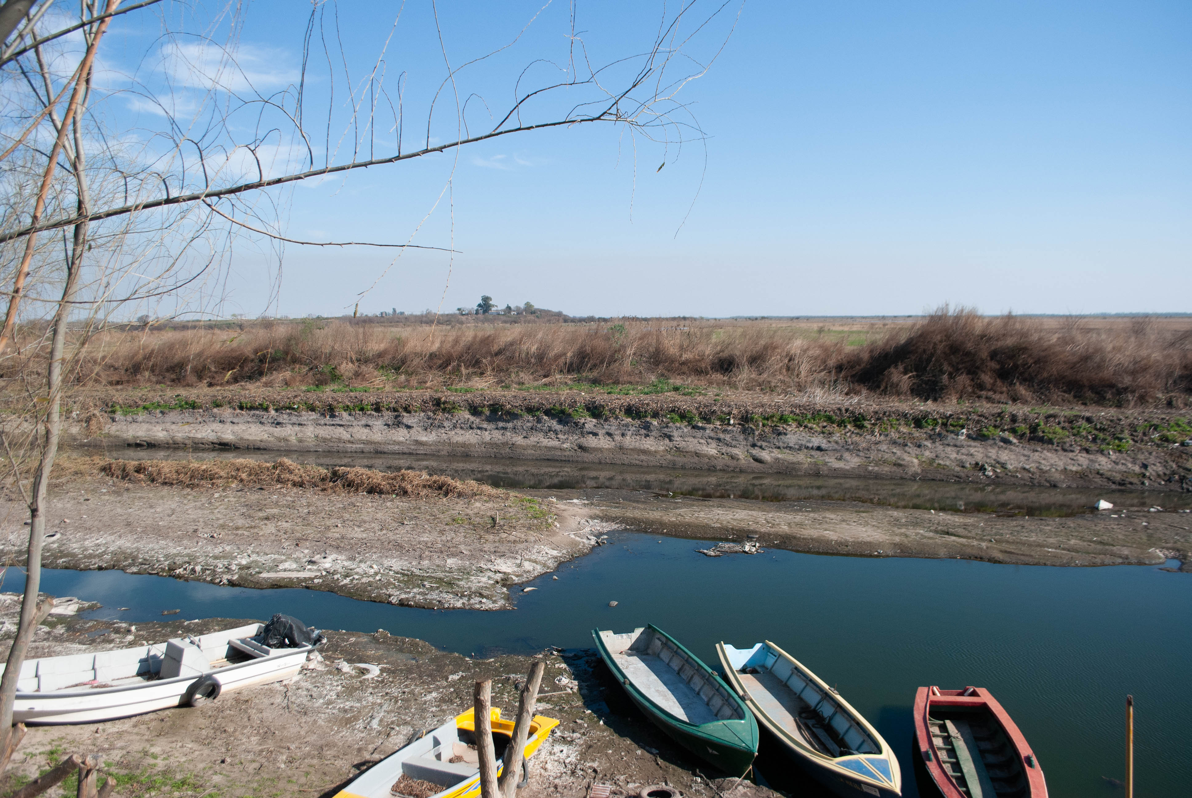 “Hoy estamos pagando las consecuencias de una obra mal hecha y sin terminar. Tenemos más sedimentos que antes y a eso se suma la bajante histórica”, se lamentaron. Solicitan colaboración para limpiar el canal y poder retomar las actividades cotidianas cuando se normalice el cauce de agua.