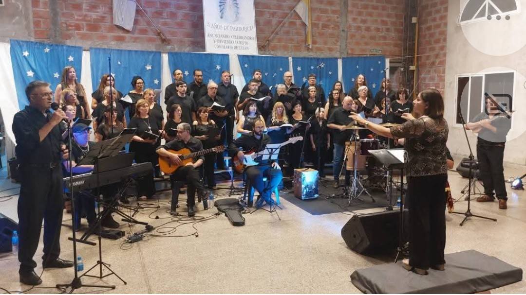 El evento, que comenzó con el objetivo de unir la música local y las voces de la comunidad en un encuentro cultural único, fue organizado por el Coro Estable, músicos locales y miembros de la Parroquia. La presentación contó con el acompañamiento institucional de la Secretaría de Cultura, Educación e Innovación Pública del Municipio. El salón de la Parroquia se llenó de emoción para recibir al Coro Estable Municipal “Ernesto Roldán”, que actuó junto a una destacada formación de músicos locales. Participaron en la instrumentación Javier “Tero” Córdoba en charango, Ariel “Pájaro” Ponce en guitarra, Adrián “Pelecho” González en teclado, Mauro Zunino en percusión, Andrés Pulido en acordeón, y Lucas Crettaz en bajo. El rol de solista vocal estuvo a cargo de Marcelo Karbiche, mientras que la dirección General fue responsabilidad de Gabriela “Popi” Herrera. La jornada se ofreció con entrada libre y gratuita, permitiendo a los asistentes disfrutar la música y vivir una experiencia llena de tradición y sentimiento en un momento de comunión para toda la ciudad.