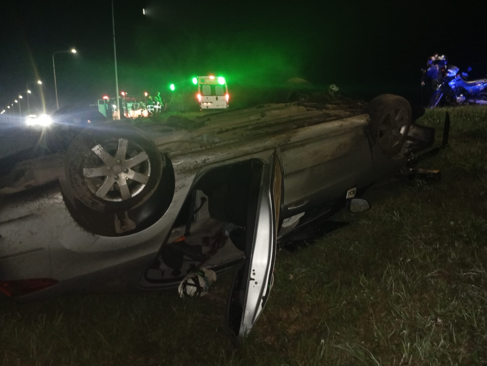 Un vehículo con tres ocupantes terminó volcado sobre la calzada. Debido a la magnitud el personal de salud decidió el traslado para una atención médica más compleja.