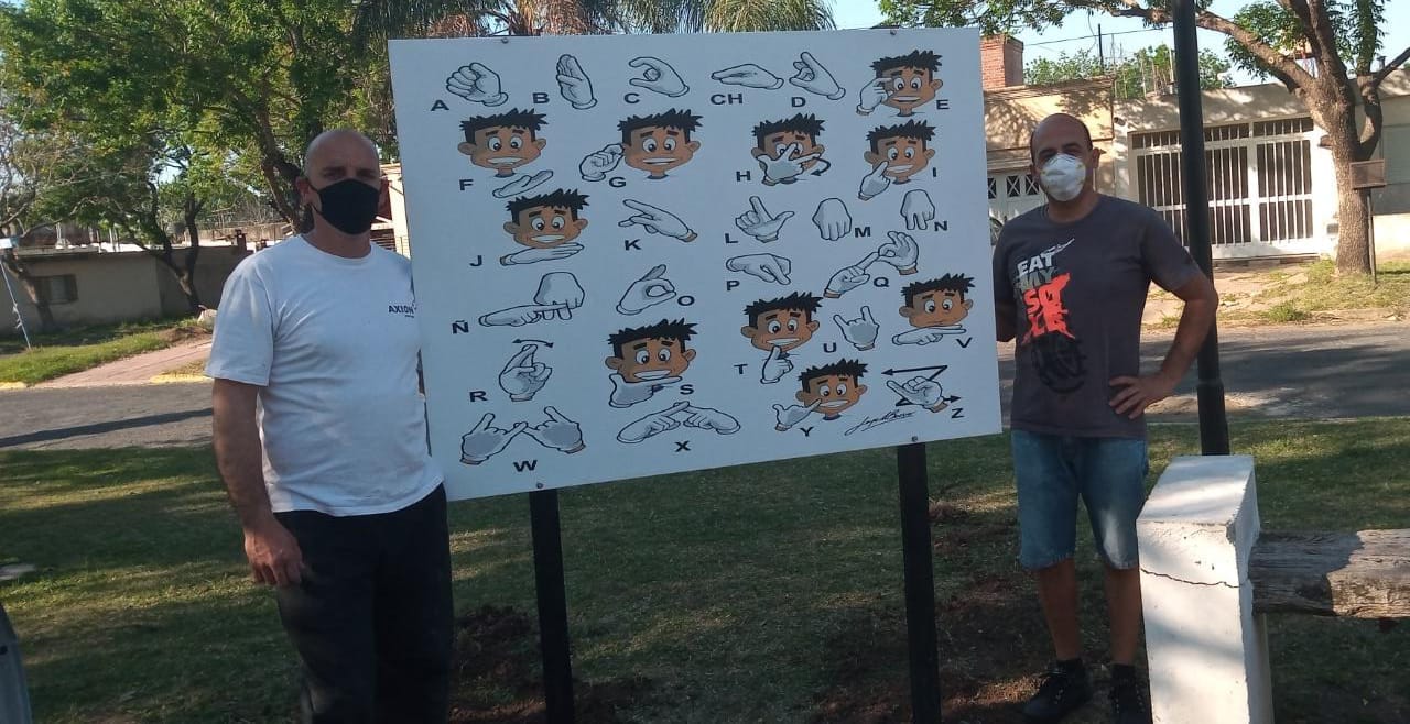 Diego Fernández, presidente de la vecinal de Barrio 25 de Mayo I, contó que pretende instalar en la plaza principal, un cartel con el abecedario en lengua de señas. El objetivo es “la inclusión” y por eso en forma gradual se realizarán este tipo de acciones para que los más chicos puedan ser “aceptados”.