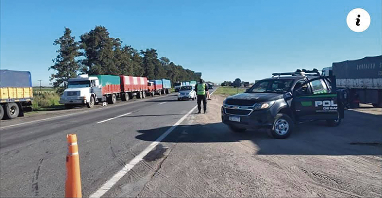 El tránsito fue desviado porque la autopista Rosario-Buenos Aires se encontraba cortada en diferentes lugares por los reclamos de los propietarios de camiones y transportes que se quejaron por la fuerte suba del combustible en las últimas semanas y que afecta a la tarifa que cobran los transportistas. “Somos trabajadores, pequeñas empresas y empresarios los que estamos acá” decían a quienes preguntaban por la situación que los sorprendía.