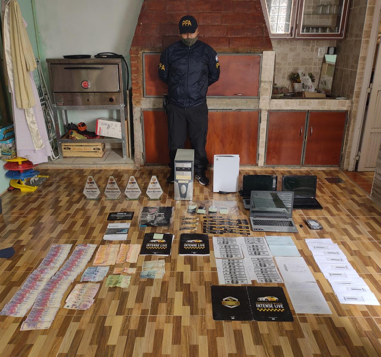 De esta manera y tras 10 allanamientos, la PFA identificó a la y los integrantes de la banda y secuestró 23 teléfonos celulares, CPUs, tablets, notebooks, discos rígidos, folletería de la empresa involucrada en la estafa, muchos dólares y pesos y material de interés para la investigación.