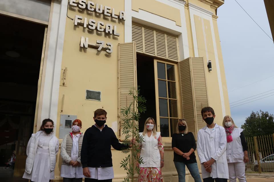 La Municipalidad visitó las entidades educativas y regaló árboles “Aguaribay”.