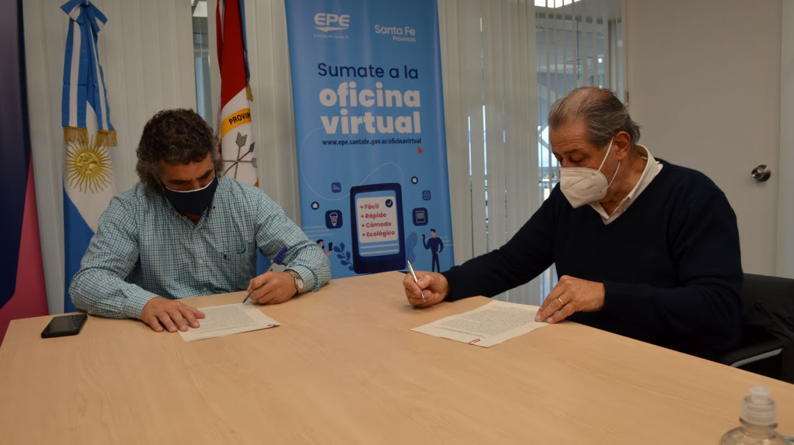 El Presidente de la EPE, Mauricio Caussi, junto al titular de la FISFE de Santa Fe, Víctor Sarmiento, firmaron en la sede de la administración central, un convenio marco que procura una mejor utilización de los recursos energéticos.