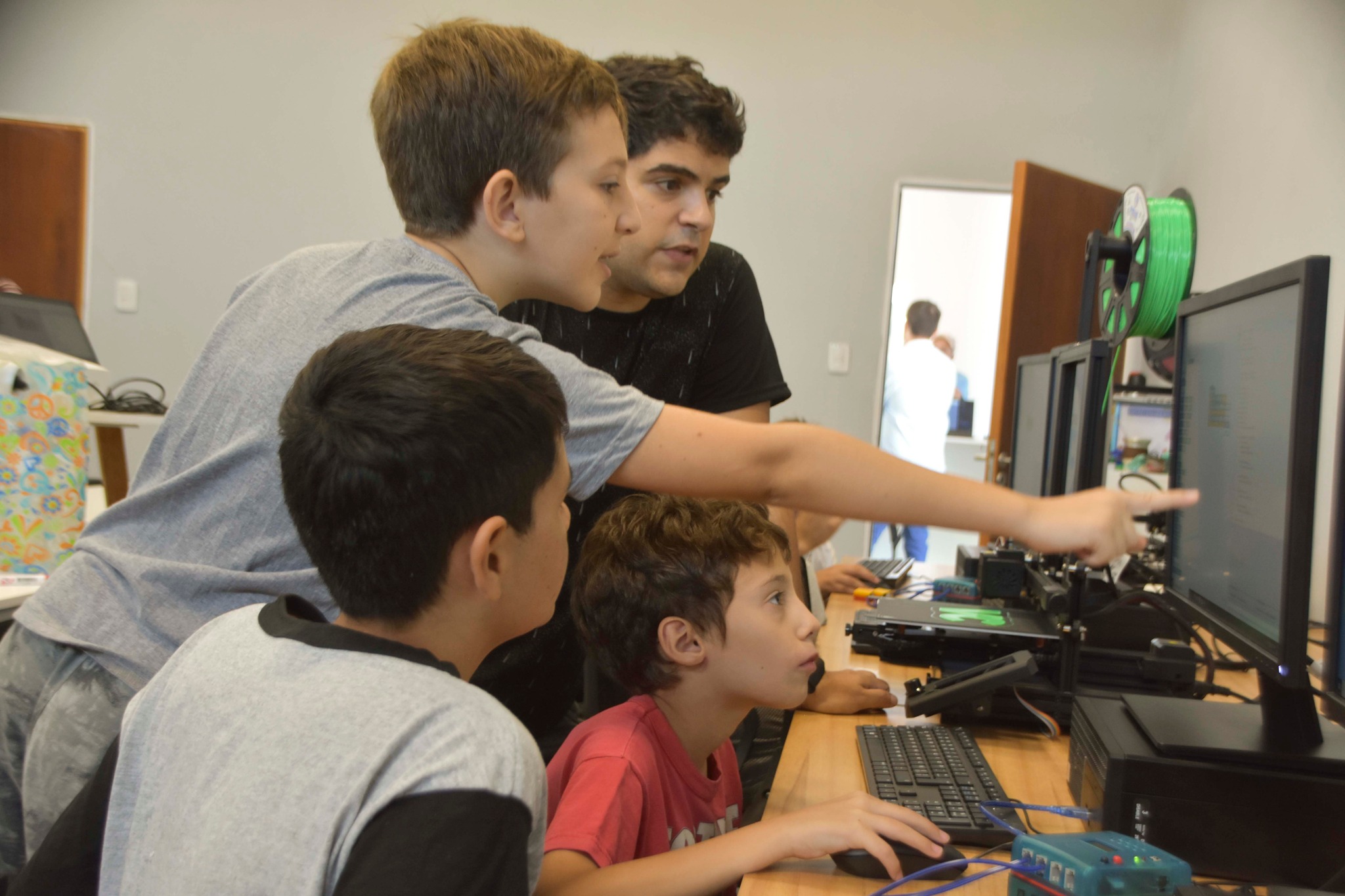 El intendente Jorge Berti estuvo presente, junto al secretario de Finanzas Nicolás Rubicini y el secretario de Producción y Desarrollo Económico Fernando Kunich, en lo que fue la primera clase de los talleres de Robótica con programación de Scratch y Diseño e impresión 3D.