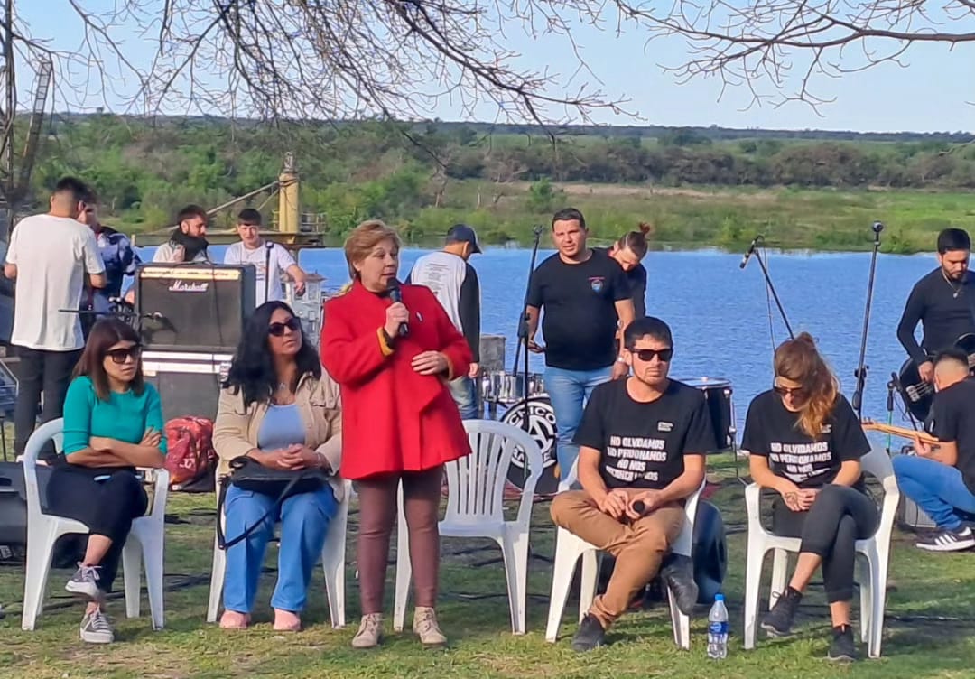 Con testimonios en vivo de Roxana Palacios y Alicia Ruescas, hijas de dos de las víctimas, “reconstruimos un pedazo imprescindible de la identidad de nuestra ciudad como actividad principal del acto”, señalaron desde la agrupación. Además, Chiflados, Furtivos y Chico Animal, tres bandas de Villa Constitución, le pusieron música a este festival a orillas del Río Paraná.