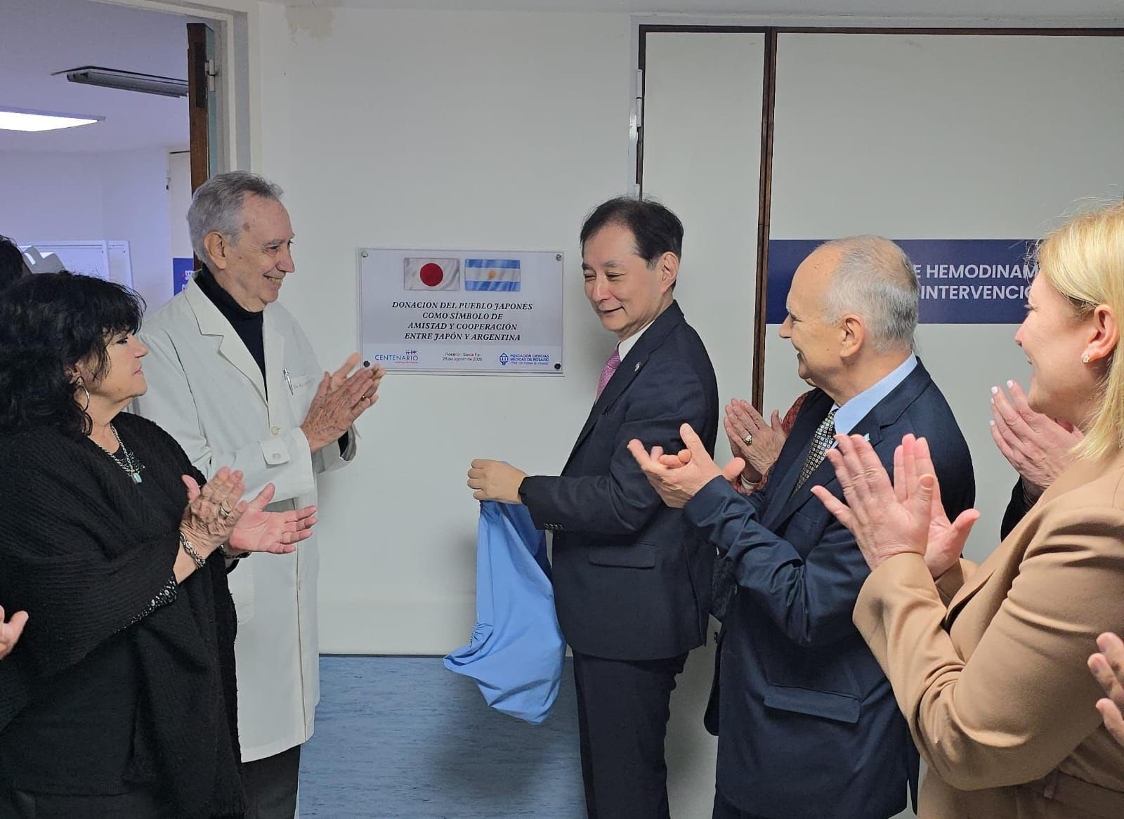 Del acto también participaron además, el secretario de Relaciones Internacionales de Santa Fe, Claudio Díaz; la directora del Hospital Centenario, Claudia Peruch; y el subdirector, Ezequiel Ariza; el secretario de Tercer Nivel de Atención del Ministerio de Salud, César Pauloni; la subsecretaria de Tercer Nivel, Patricia Morales; el jefe del Servicio de Anestesia, Eduardo Pérez; el coordinador de Cirugía Cardiovascular de Anestesiología, Diego Ogusuku; el representante del Estado ante el Consejo del Hospital, Mauricio Spilere; y el presidente de la Asociación Japonesa de Rosario, Alejandro Toguchi, entre otros.