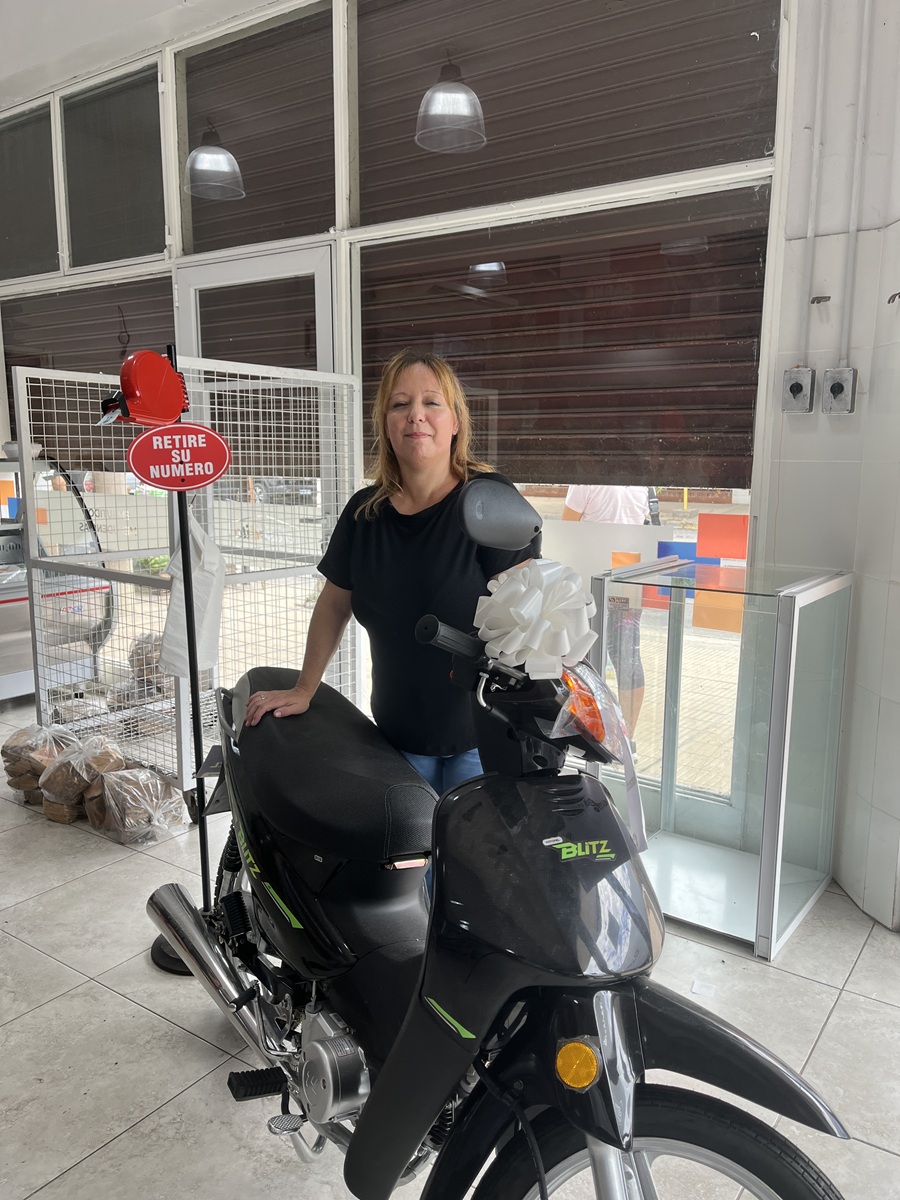 Frigorífico El Asadito realizó el sábado pasado el sorteo de una motocicleta Motomel Blitz 110 V8 Full entre los clientes que efectuaron compras en el local ubicado en la esquina de Dorrego y Catamarca. La iniciativa buscó recompensar la fidelidad de quienes los eligen diariamente. El evento se transmitió en directo a través de la cuenta oficial de Instagram de la firma y arrojó como ganadora a María Inés Romanutti.