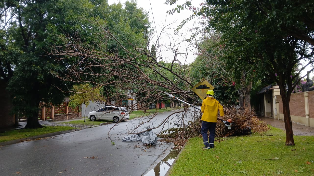El fenómeno meteorológico de la madrugada del martes dejó daños en postes de servicios y restos de arbolado en la vía pública, aunque no se reportaron heridos.